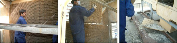 冷卻塔填料是冷卻塔的重要組成部分,是冷卻塔熱交換的關(guān)鍵部件,與冷效高低直接有關(guān),其質(zhì)量和作用在很大程度上決定著冷卻塔的冷卻能力,冷卻塔填料使用一段時(shí)間后,由于風(fēng)吹日曬,以及長(zhǎng)時(shí)間的藻類(lèi)侵蝕,容易出現(xiàn)