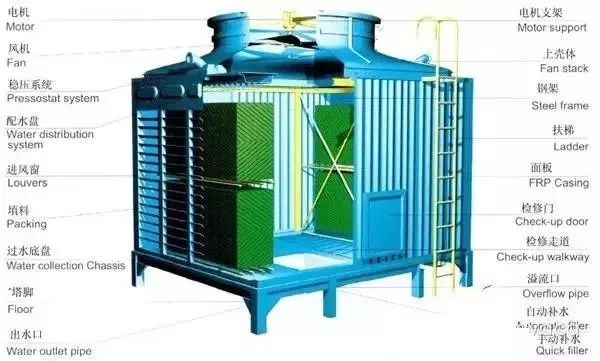 工業(yè)生產或制冷工藝過程中產生的廢熱,一般要用冷卻水來導走。冷卻塔的作用是將挾帶廢熱的冷卻水在塔內與空氣進行熱交換,使廢熱傳輸給空氣并散入大氣中。