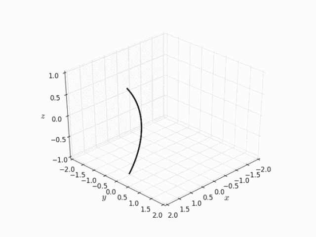 可以看到,直線繞軸旋轉(zhuǎn)形成了雙曲面。