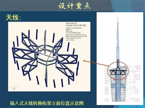 另外,由于廣州新電視塔處于飛機(jī)轉(zhuǎn)向區(qū),按照規(guī)定,該處飛機(jī)在航線所處位置周圍300米內(nèi)不能出現(xiàn)障礙物,新電視塔上方飛機(jī)飛行高度為海拔900米,因此,為確保飛機(jī)飛行安全,也對(duì)塔頂天線做了細(xì)部處理,現(xiàn)已從塔頂天線撤出10米,最終高度為600米。