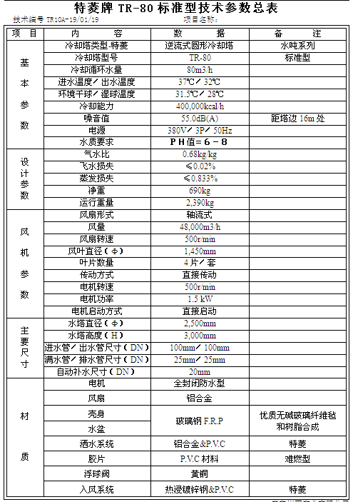 特菱TR系列80噸冷卻塔的技術(shù)特點: