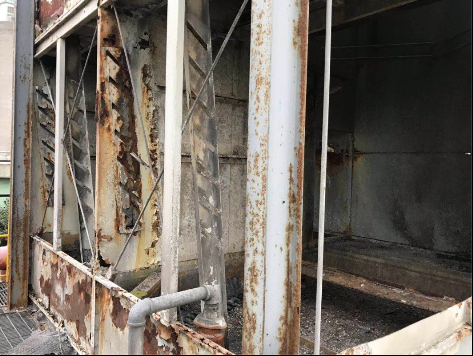 根據(jù)上圖的結(jié)構(gòu)我們還知道,閉式冷卻塔盤管的四周是被鍍鋁鋅板外殼所包圍著的,所以我們?cè)诓鹆耸账骱?,還需要將外殼也拆除了。
