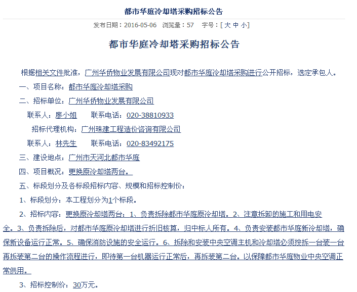第三方網(wǎng)上公開(kāi)冷卻塔招標(biāo)信息: