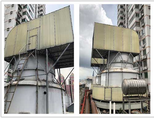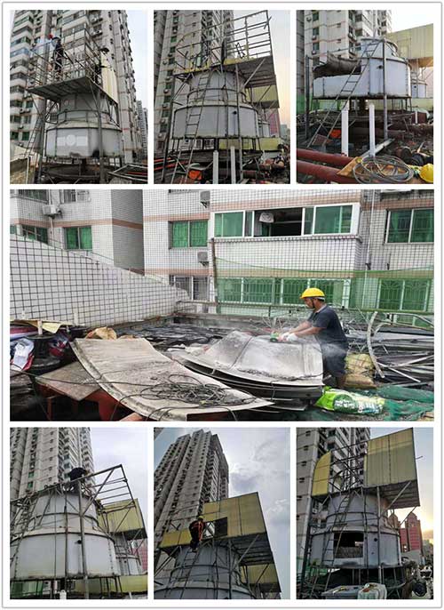 鴻翔花園位于深圳老城區(qū)之一的羅湖蔡屋圍區(qū)松園路。由于冷卻塔使用壽命長(zhǎng),冷卻塔填料老化,需要更換冷卻塔填料。接下來,根據(jù)鴻詳花園圓形冷卻塔填料的更換,介紹了拆卸和更換圓形冷卻塔填料的正確過程。 在清除